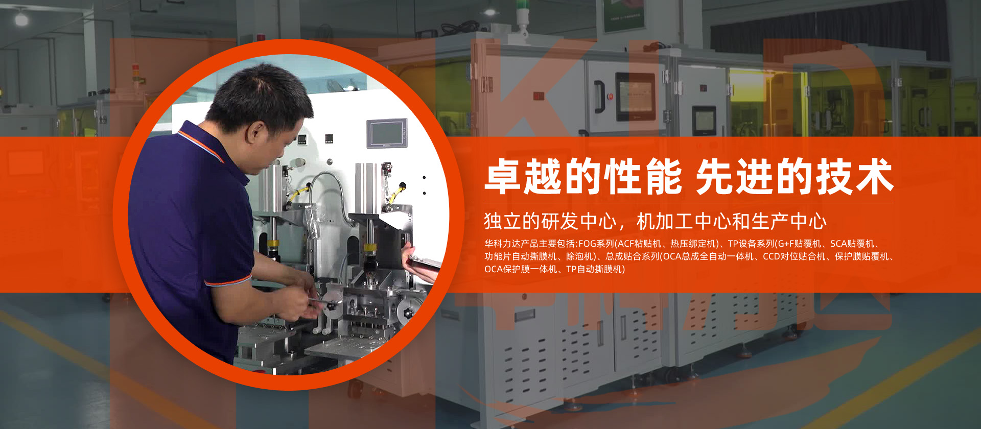 深圳華科力達(dá)自動化設(shè)備有限公司成立于2013年,是一家集觸摸屏生產(chǎn)設(shè)備研發(fā)、制造、銷售及服務(wù)于一體的高新技術(shù)企業(yè)。華科力達(dá)的產(chǎn)品主要包括:FOG系列(ACF粘貼機(jī)、熱壓綁定機(jī))、TP設(shè)備系列(G+F貼覆機(jī)、SCA貼覆機(jī)、功能片自動撕膜機(jī)、除泡機(jī))、總成貼合系列(OCA總成全自動一體機(jī)、CCD對位貼合機(jī)、保護(hù)膜貼覆機(jī)、OCA保護(hù)膜一體機(jī)、TP自動撕膜機(jī)),且廣泛應(yīng)用于:智能穿戴、手機(jī)、平板、車載和家電等所有帶觸控功能的電子設(shè)備領(lǐng)域。